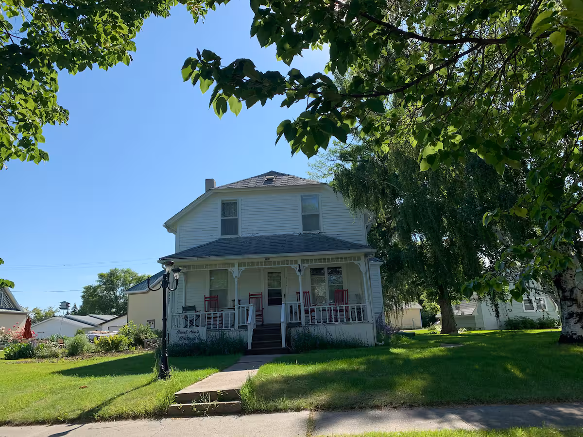 Located in Lakota, Carol Ann’s is located one block from Main Street. It is a cozy 4 bedroom house with a wonderful front porch with red rockers. It was built in the early 1900’s. It is in rural North Dakota and is a rustic farmhouse setting. It is a fully furnished and equipped home where you can relax and entertain family and friends. It is located just 29 miles from great fishing and boating in Devils Lake or 12 miles from fishing and boating and picnics at Stump Lake.