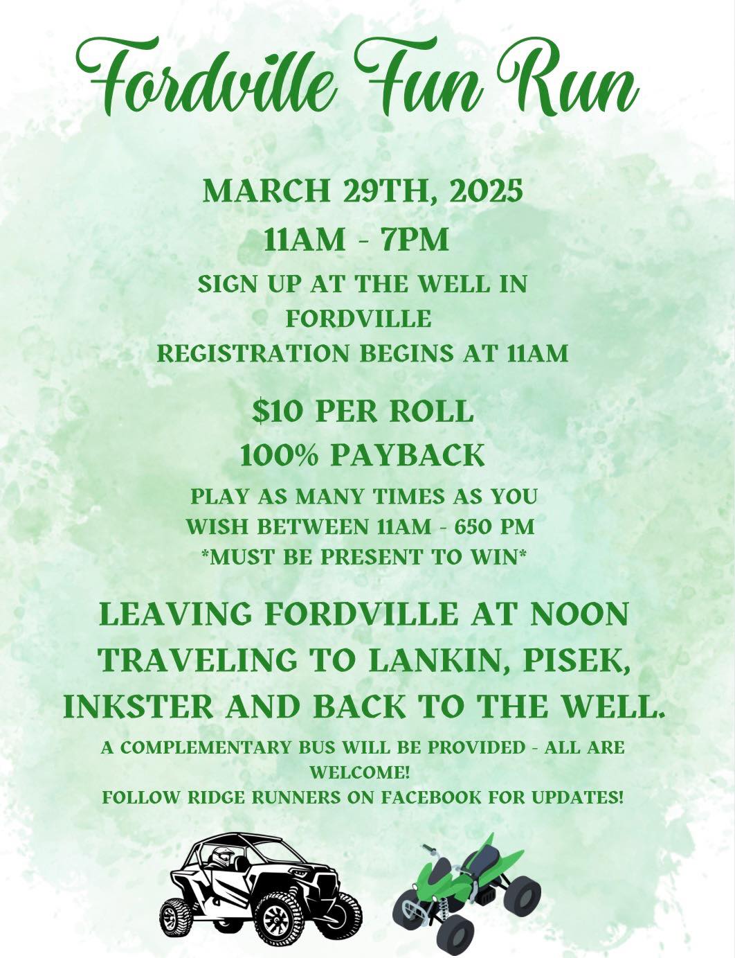 Petersburg Petersburg, ND, United StatesThe Vets Run is Saturday, June 7th 2025. Join us for a great ride around Nelson County North Dakota. Registration starts at 10:00 am. Kickstands Up at 11:30am. We would like all riders to gather on Main Street. 8-10 am Breakfast. 5:30 pm Steak Supper at the Town Pump II, while supplies last. The ride […]