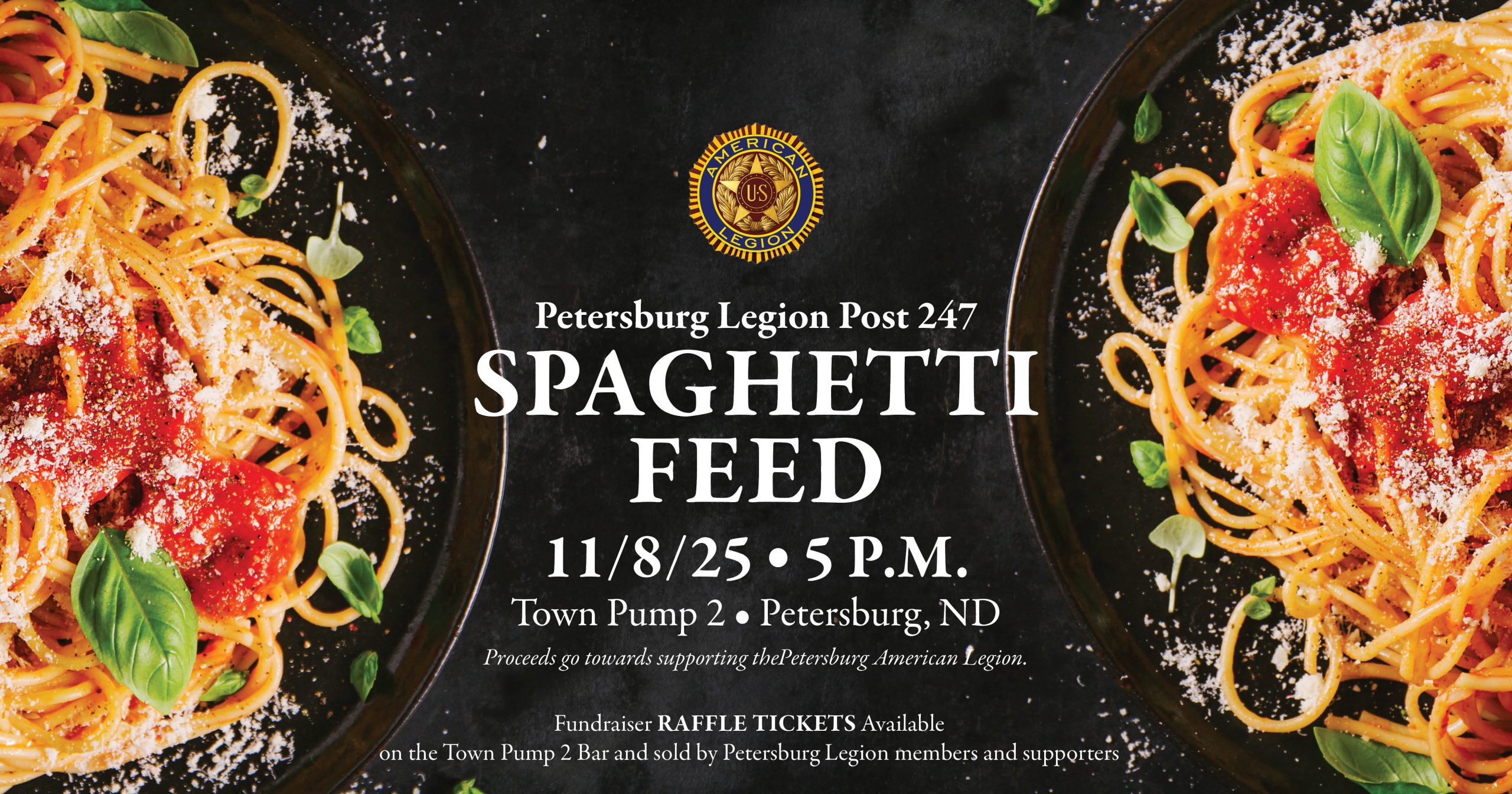 The Petersburg American Legion is hosting a delicious Spaghetti Feed at Town Pump 2 on Saturday, November 8th starting at 5:00 PM! Come enjoy a hearty meal, great company, and support a great cause. Bring your friends and family — everyone is welcome! 📍 Location: Town Pump 2 📅 Date: Saturday, November 8th 🕒 Time: 5:00 PM Don’t […] |