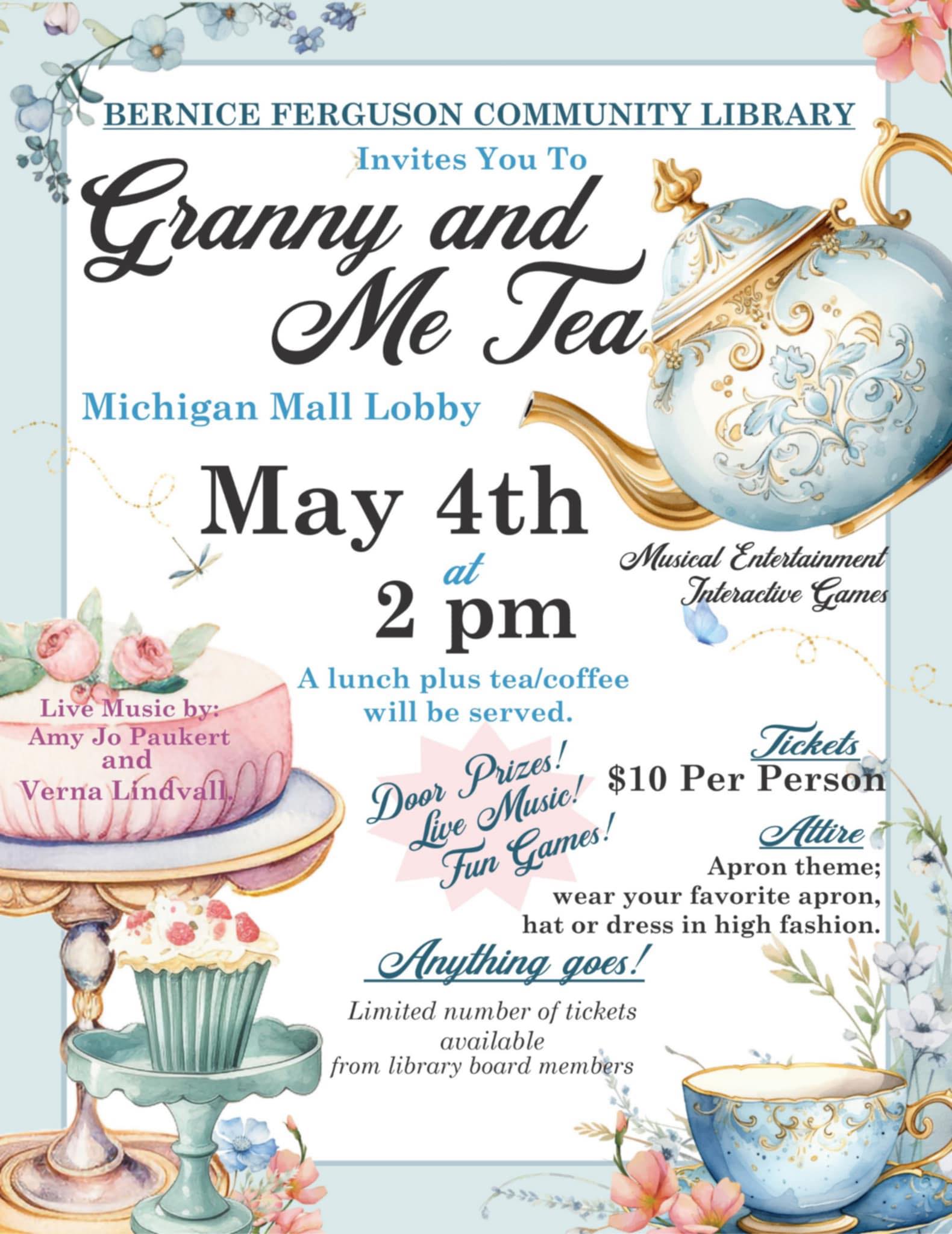 Bernice Ferguson Community Library 105 1st St E #5, Michigan, NDWe are thrilled to unveil a spectacular upcoming event, “Granny and Me Tea”, that promises to be an unforgettable experience. This celebration is one you won’t want to miss. Tickets may be purchased in advance from any library member (Linda Miller, Rhonda Buhr, Karissa Daws, Jennifer Barney or Maria Vasichek). Librarians Jan Sonderland and Jordan […]