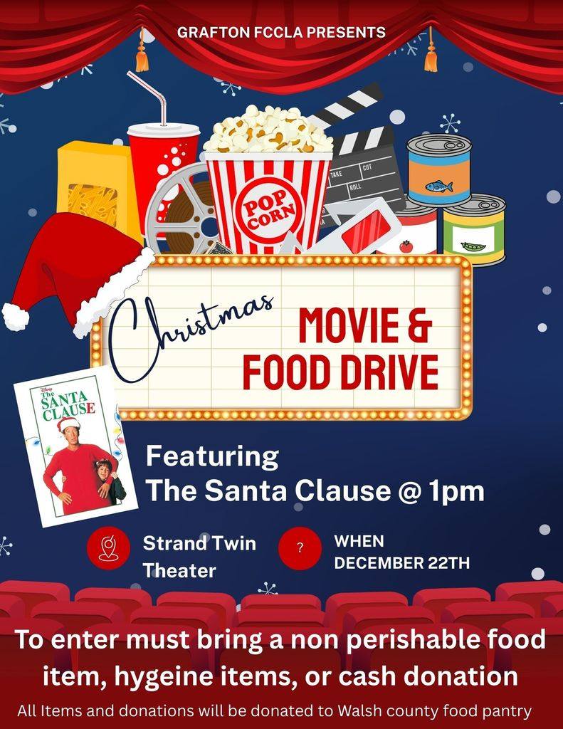 Need some plans for the kiddos during Christmas break?Come and help Grafton FCCLA fill the Walsh County Food pantry and watch a free movie.Where: Strand Movie Theater in GraftonWhen: Monday, […]