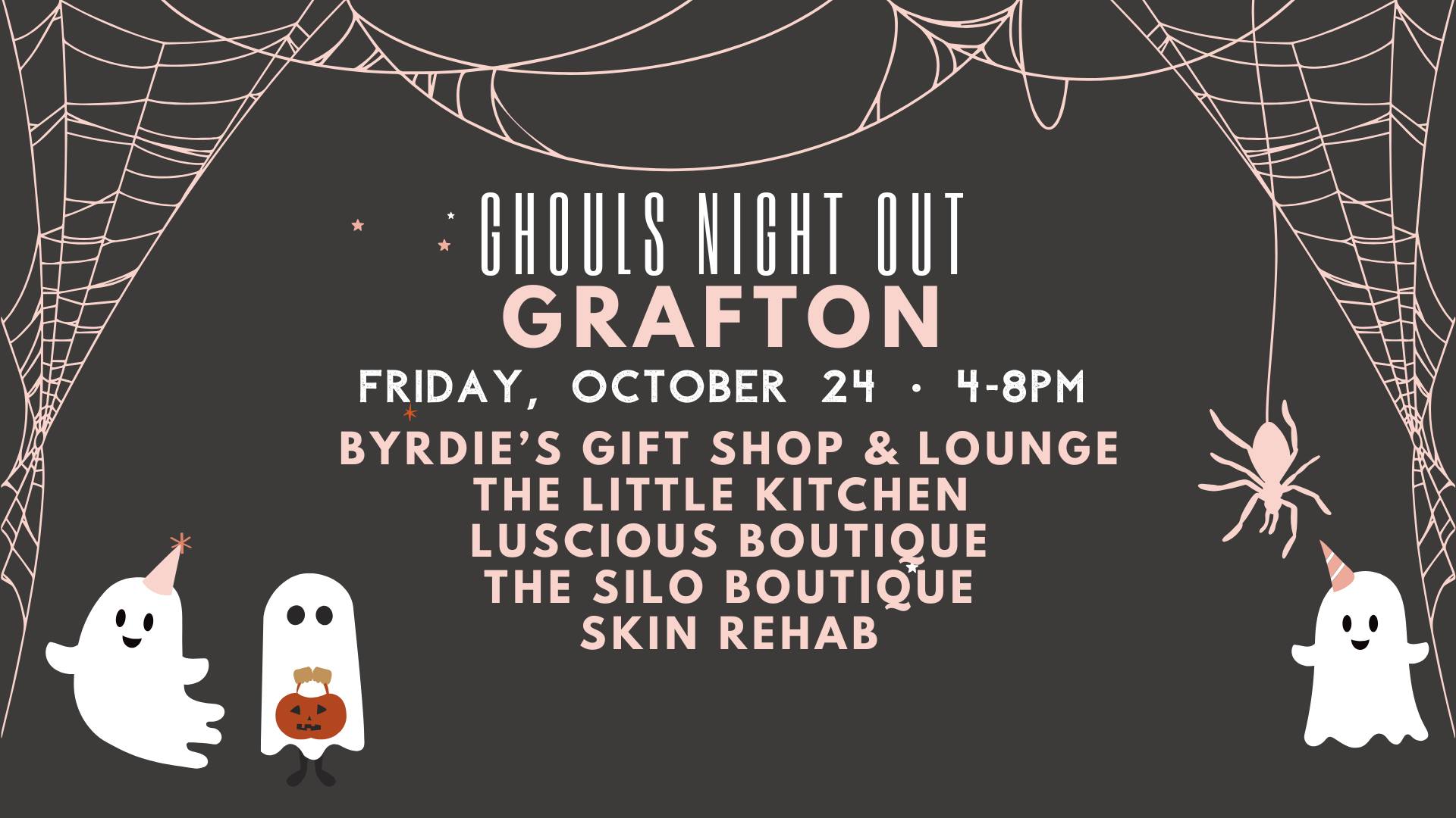Grafton Grafton, ND, United StatesJoin us for a SPOOKTACULAR NIGHT in Grafton! Grab your GHOULS and come out for Shopping, BOOze, BOOtox, and more! Full List of spooky shopping spots will be announced soon!
